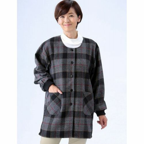 婦人毛混チエック背ボアチュニックスモックM~L/LL