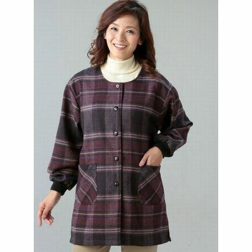 婦人毛混チエック背ボアスモックM~L/LL