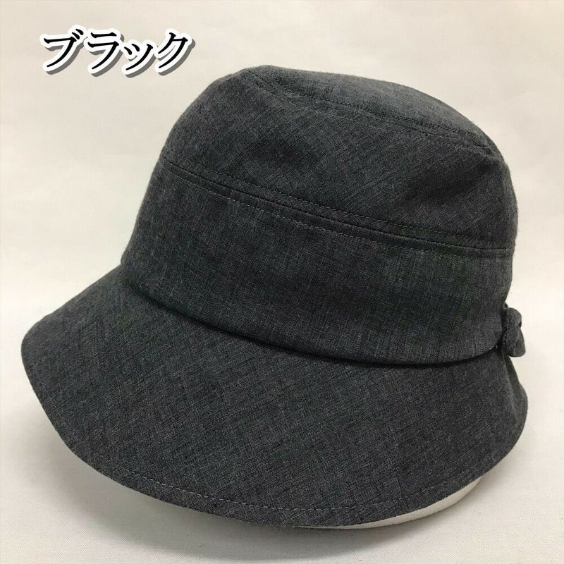 婦人クロッシェ後ろリボンレディース帽子ブラックSサイズ
