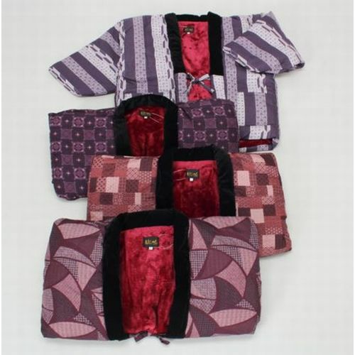 5. 婦人梨地背ボア綿入り半纏サイズ M~L色柄おまかせ注文