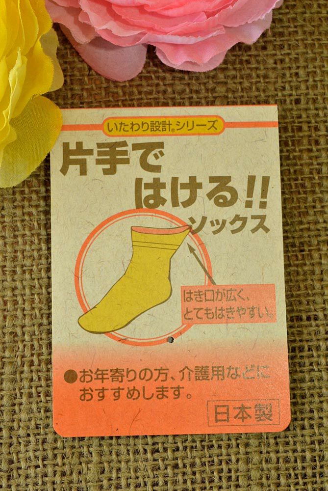 ご好評をいただいております片手ではけるソックスの冬向き、毛混タイプが入荷してまいりました。履き口が広いのでとても履きやすくなっております。つま先を入れていただいたらかかと側にあるつまみ部分を引っ張っていただくと、スッと履けます。履いたときは締め付けず、ゆったりとお履きいただけます。お年寄りの方や介護にもおすすめです。