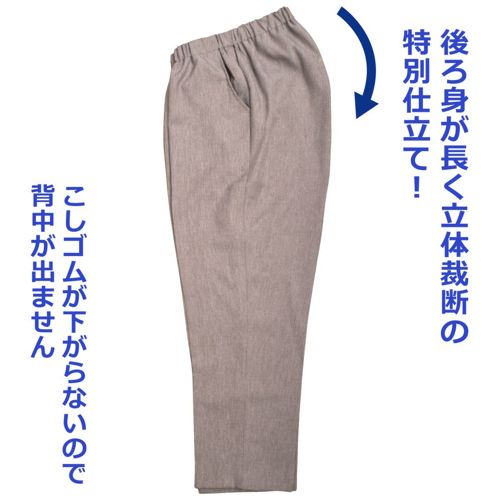 (特許)腰らくパンツ夏素材楊柳(ようりゅう)腰曲りズボン股下58cmM~3L/(丈直しは、お応えいたしかねます)