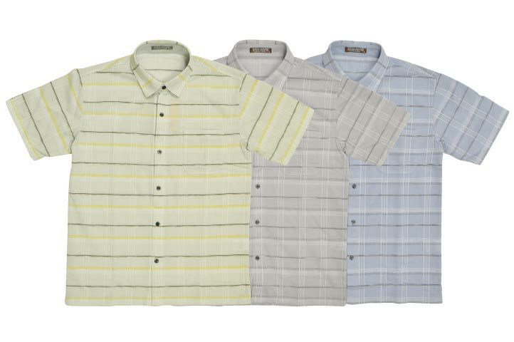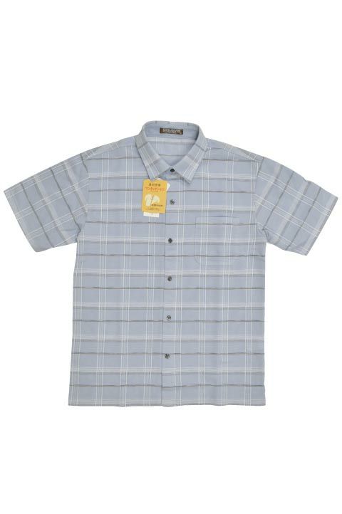 紳士半袖全開ワンタッチホック式ニットシャツS~LL(色柄お任せ受注)