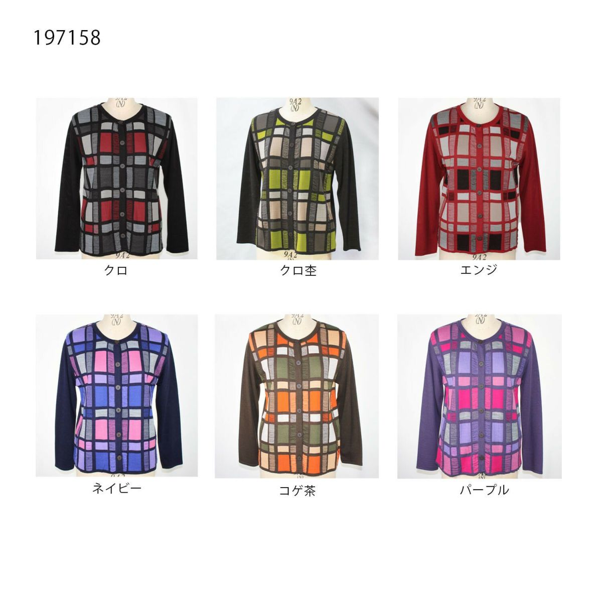 婦人毛混かすり糸花柄カーディガン特大寸日本製2L~3L