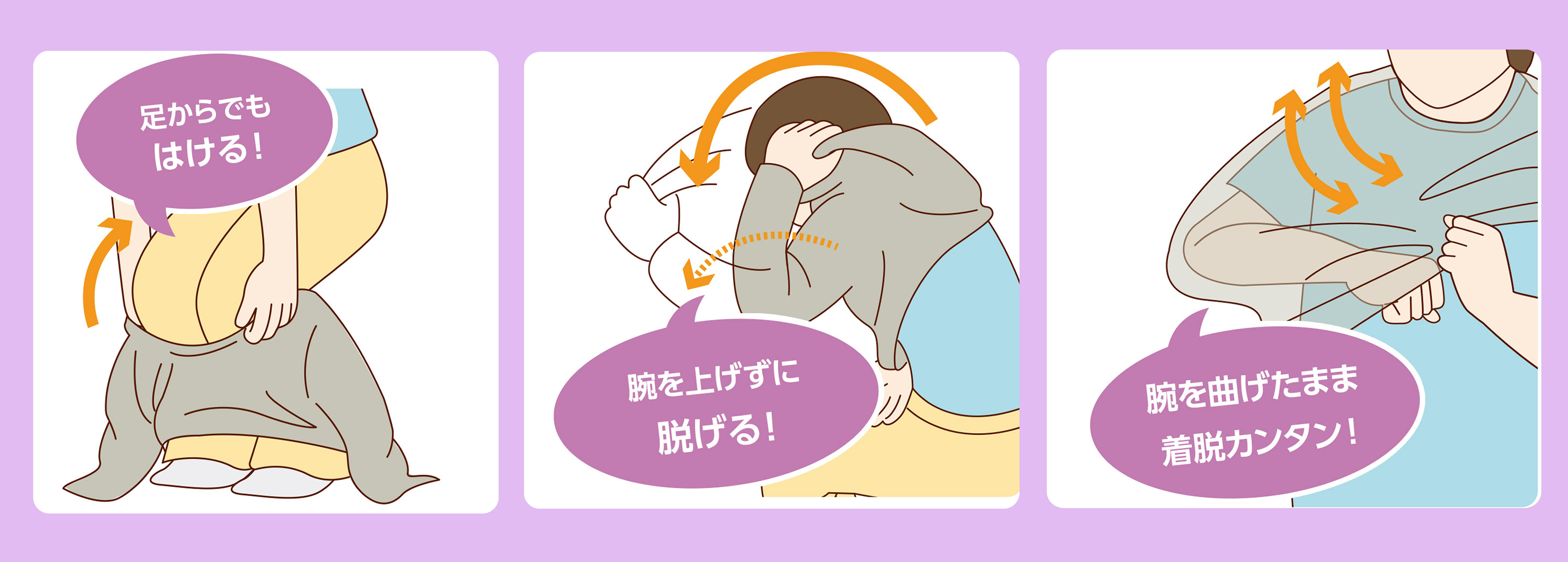 究極の伸縮性とすべりの良さで腕を曲げたままでも着脱らくらくの伸縮素材。