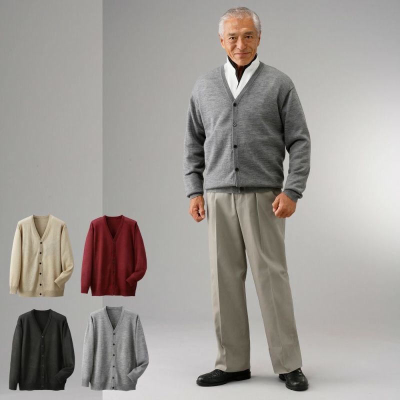 ビジネスにもカジュアルにも1枚あると便利なウール混カーディガン。