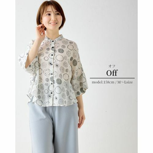 【インド綿】コットンリネン レディース トップス ドット柄 刺繍風 プリントシャツブラウス 涼しい