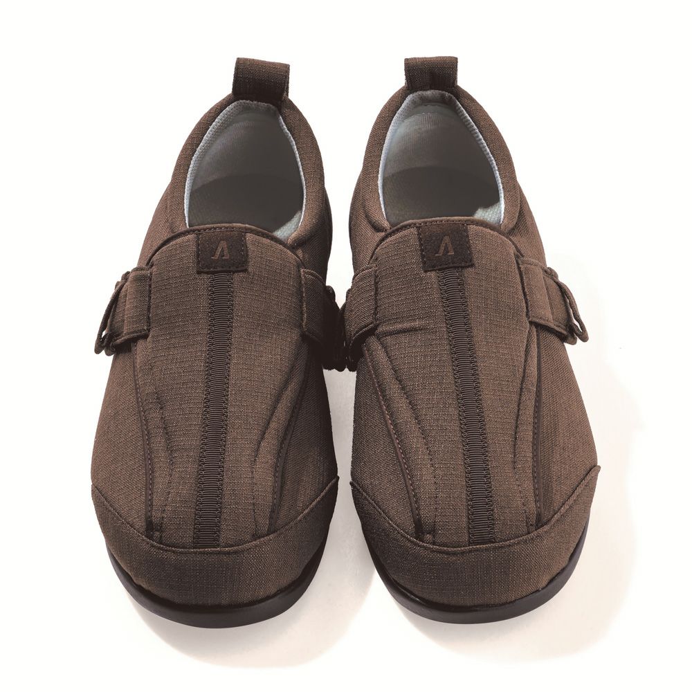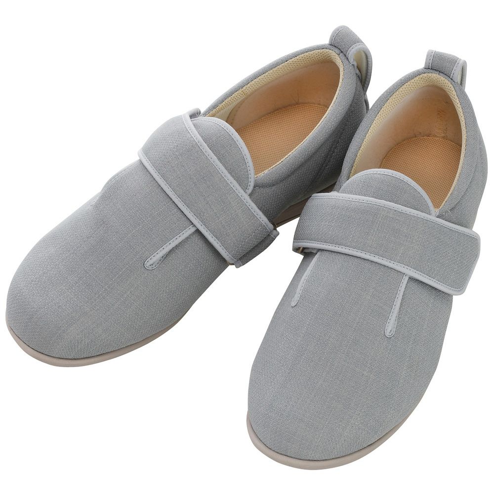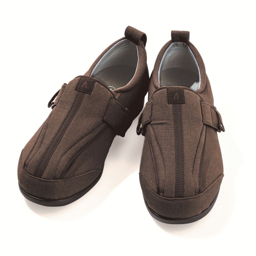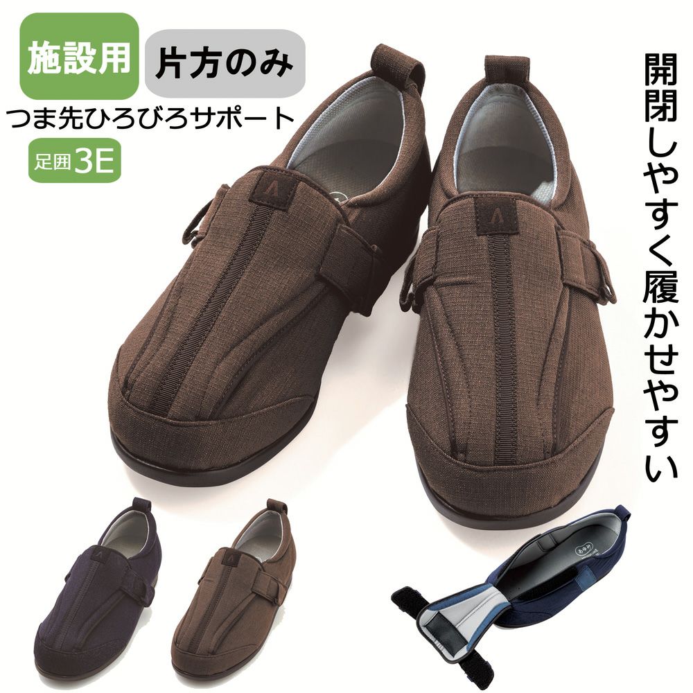 幅広で脱ぎ履きが楽な靴がございます。左右のむくみが違う場合には、左右別売りの靴でサイズ違いに購入することができる靴がございます。