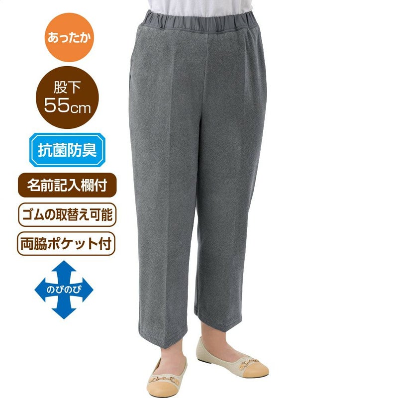 ○ゆったりめのウエストゴムで引上げやすい。