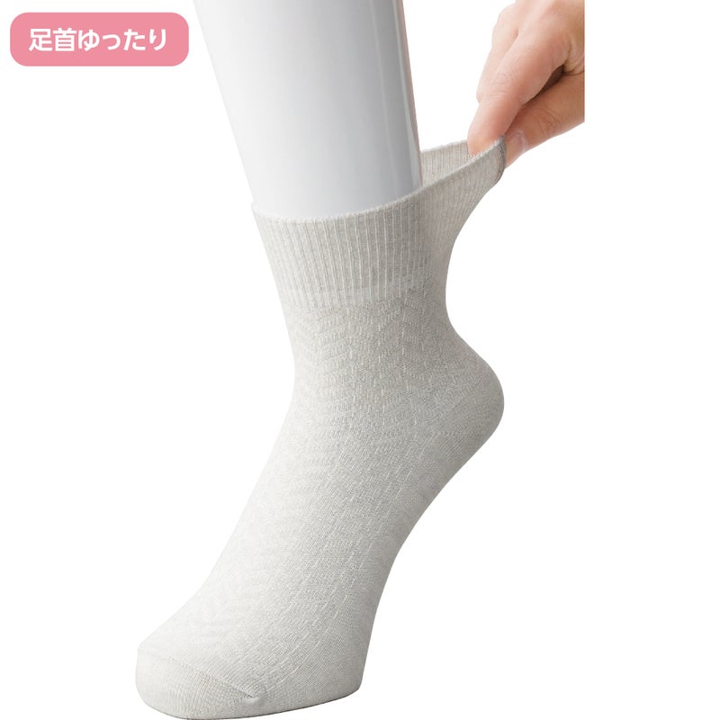 足首ゆったりで締め付け感がなく、さわやかな肌ざわりの麻混ソックスです。