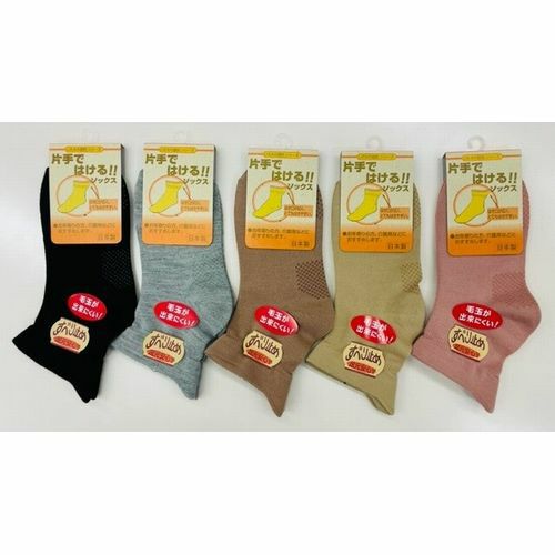 婦人片手ではける毛混ソックス すべり止め付き 日本製(色お任せ受注)