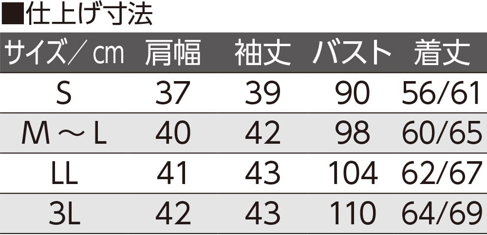【サイズ】S、M~L、LL、3L