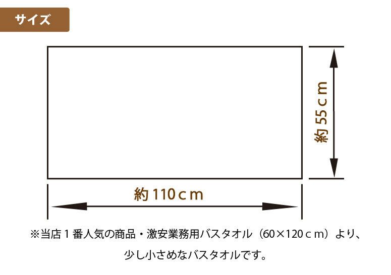 他の画像を見る 累計1億枚販売実績業務用をご家庭でご利用いただきやすい枚数で販売 業務用バスタオル410匁総パイル綿100% (約)55×110㎝5枚組(カラー別5枚組値段) ¥ 2,200 税込 在庫なし 累計1億枚販売実績 業務用でのご使用はもちろん、ご家庭でのご使用でも大変好評を頂いております。 カートに入れる お気に入りに登録する