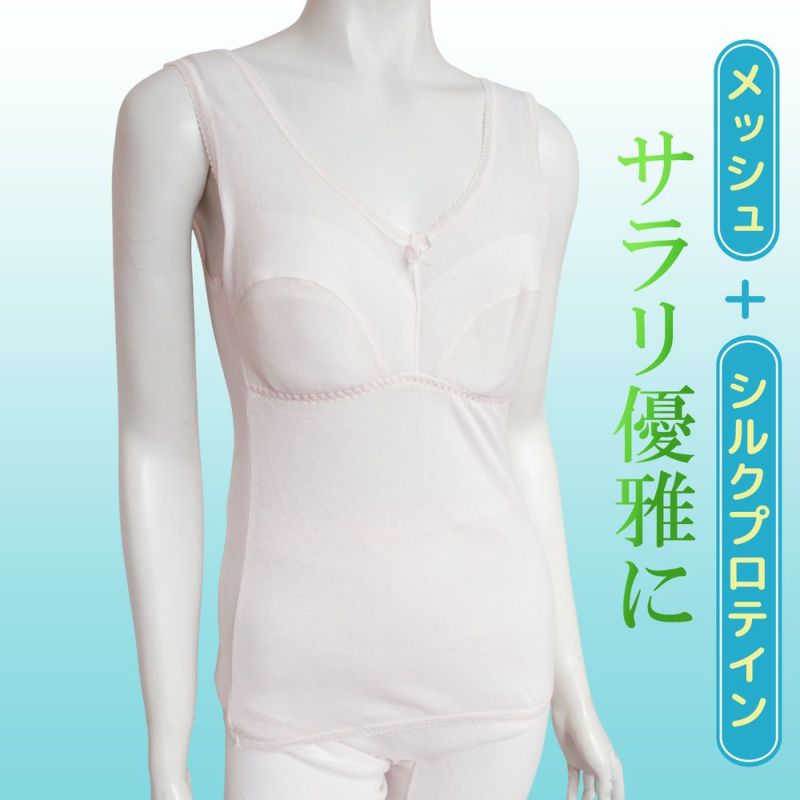 婦人総メッシュシルクプロテイン加工ブラカップ付きインナー