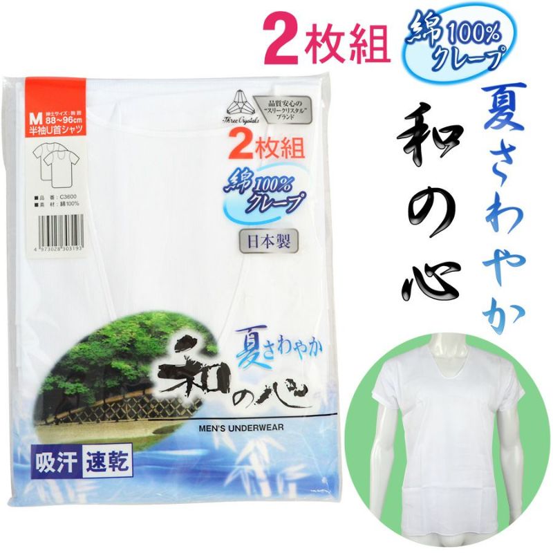 紳士半袖クレープシャツ綿100%2枚組日本製