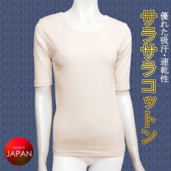 5. 婦人綿100%強撚ガス焼8分袖インナー(後ろ長め)M~LL 日本製