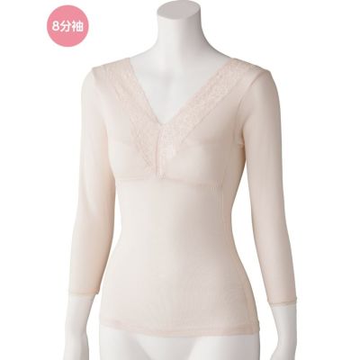 婦人カシミヤタッチ両面起毛発熱効果ふわっとあたたか8分袖インナー(後ろ身頃長め)