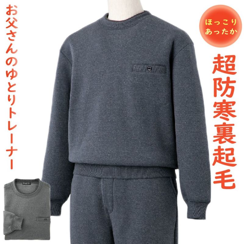毎シーズンよく売れている、お父さんシリーズの裏起毛丸首トレーナーです。