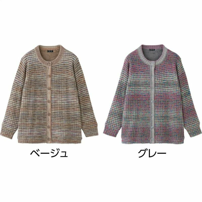 6. かすり調丸洗い裏ボアカーディガン(婦人)グレー系