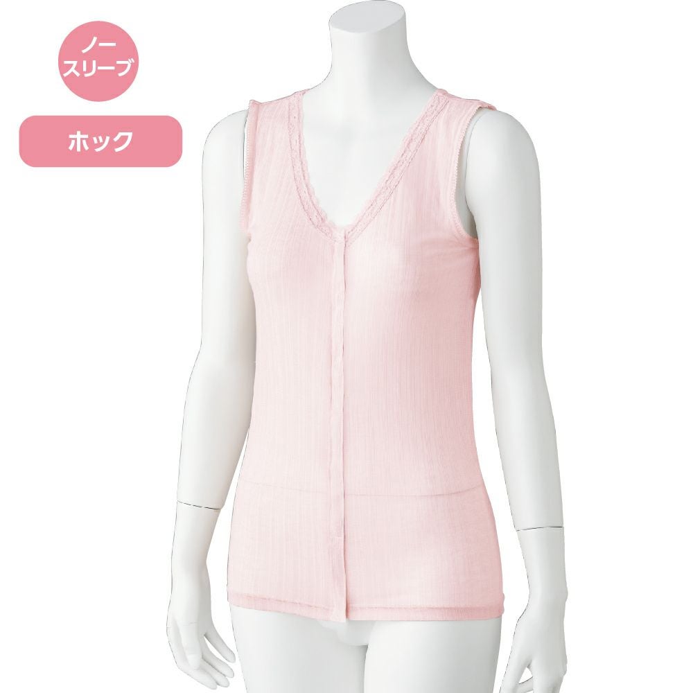 他の画像を見る フライス杢ノースリーブホックインナー(婦人) LLサイズあり 綿100% 着脱らくらく ホックボタン 保湿 ¥ 2,068 税込 ナノファイン加工により細菌の増殖を99.9%カット。 サイズ M、L、LL カートに入れる お気に入りに登録する