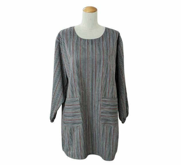 他の画像を見る 着脱しやすい首後ろ縛り紐付き 婦人紬柄先染めストライプ割烹着綿100%サイズM~L ¥ 2,980 税込 在庫なし ロングセラーの和柄シリーズ綿100%割烹着です。 カートに入れる お気に入りに登録する